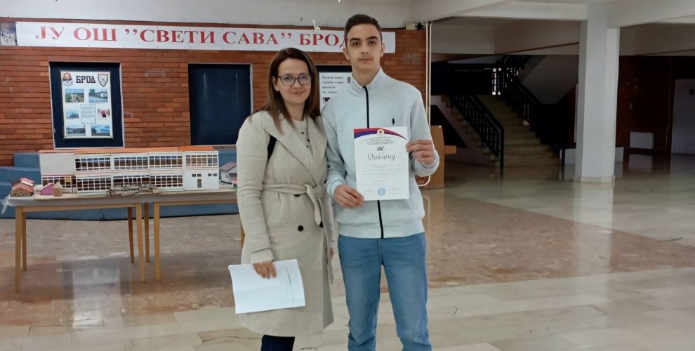 Честитамо од срца Матеју и наставници Снежани на оствареном резултату. Желимо им много среће на наредним такмичењима, уз увјерење да ће и даље достојно представљати нашу школу!